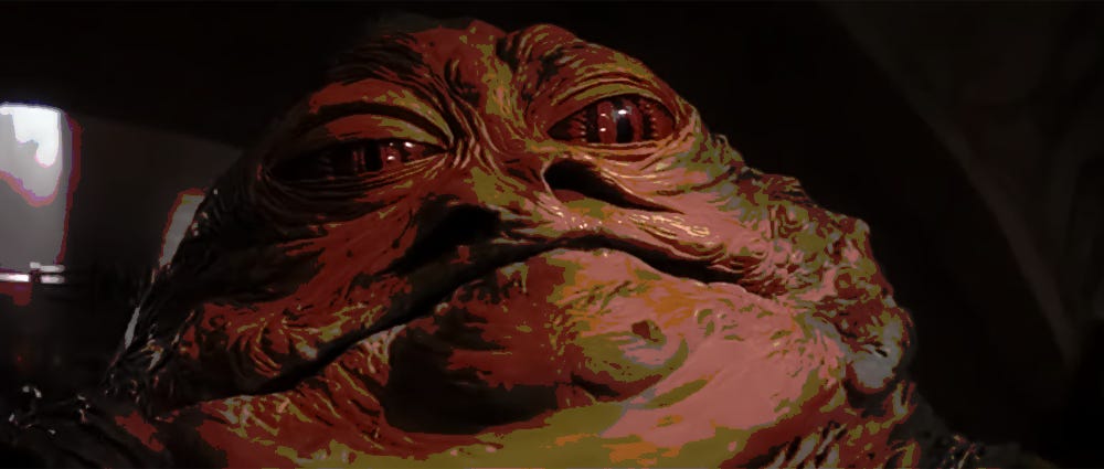 We start Return of the Jedi with Han Solo having been delivered to Jabba the Hutt, where he’s kept on display in carbon freeze.1