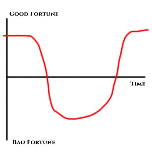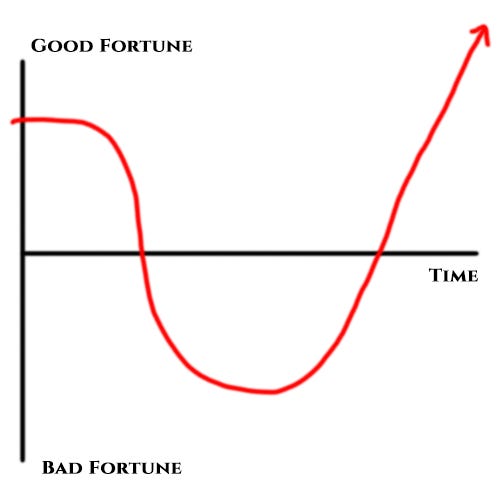 All of which said, there are other story shapes I’m even less a fan of, notably “From Bad to Worse.” Wherever the character starts, their path just keeps on going down.